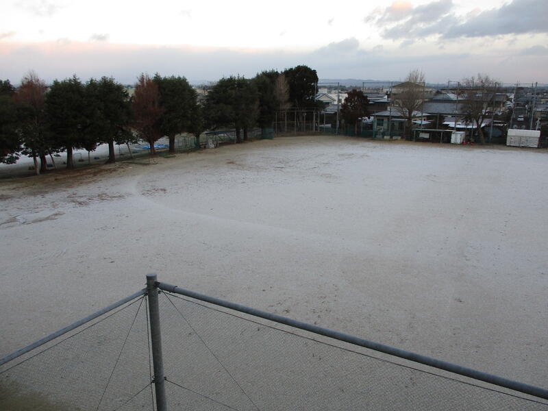 12月23日(金)今日は2学期の終業の日。とても冷え込んで、今年初めての雪がグランドをうっすらと覆いました。
