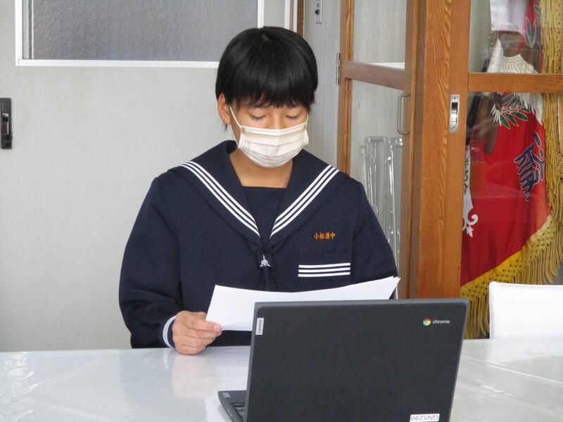 「私は、批判と誹謗中傷との違いをよく知らなかったけど、今回の集会でその違いが良くわかったし、誹謗中傷は絶対にやめようと強く思いました。たった一言で一人の人が死んでしまうのはとても怖いなと思いました。大塚先生が言っていたように直接言葉でいうのと、ネット上に書いて思いを相手に伝えるのは伝わり方が全然違うし、書くのは難しいなと思いました。一人一人の気持ちを大切にして絶対に自分は誹謗中傷はやめようと思いました。」