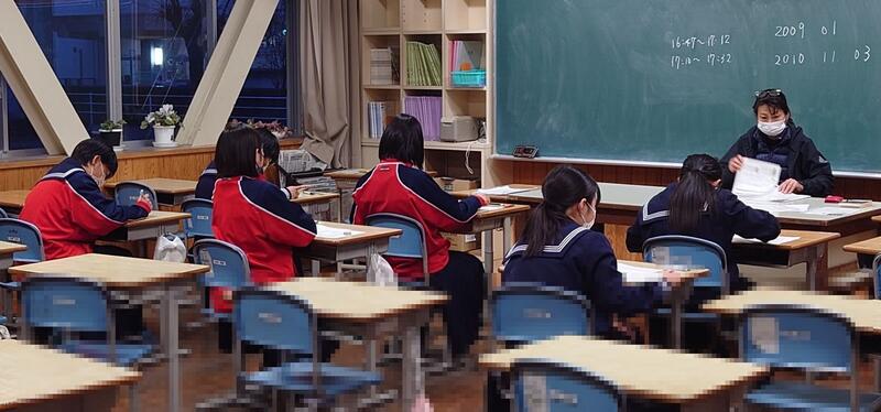 全学年、今日から明日にかけて実力テストが実施されます。定期テストとは違い、テスト範囲が広く、基礎的な問題だけでなく発展的な問題も出題されています。どの生徒も真剣な表情で取り組んでいます。なお、テスト実施に合わせて進路希望調査を行います。