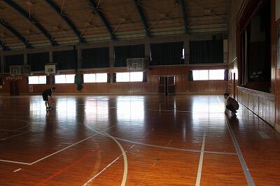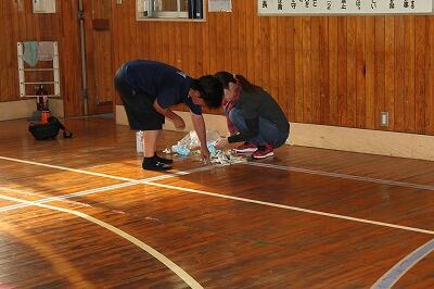 また、6月19日(木)から22日(日)の期末テスト前の部活動停止期間には、後援会の皆様が体育館のハンドボールコートのライン修理のボランティアをしてくださいました。色が薄くなったラインを丁寧にマスキングし、ペイントしていただき、心より感謝申し上げます。乾燥後にテープを剥がし、完成したコートを見るのが今から楽しみです。