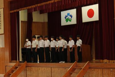 6月24日(火)の3校時、本校体育館にて宮崎県中学校総合体育大会の激励式が開催されました。この式の目的は、県大会に出場する部活動の活躍を全校生徒で祈念し、参加選手一人ひとりが都城地区、そして小松原中学校の代表として誇りを持って大会に臨めるようにすることです。