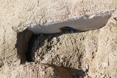 北校舎北側にある部室棟脇の側溝付近に、以前から一部地面の沈下が見られていました。梅雨時の大雨の影響か、ついに陥没が進行し、側溝を形成しているコンクリートが見えるほど穴が大きくなってしまいました。