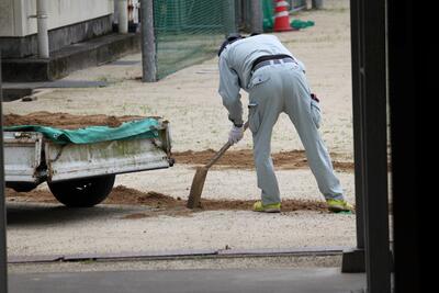 北校舎北側 部室棟脇の陥没穴を補修しました