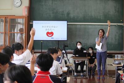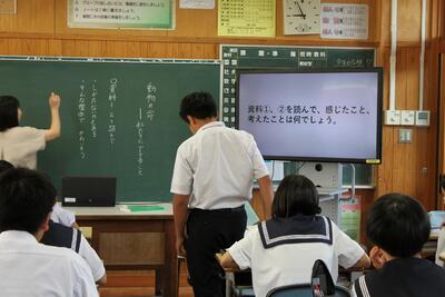 7月8日(火)の1校時に、新採の髙岡教諭の道徳の研究授業が1年2組で実施されました。主題名は「 生命の尊さ」で、 身近な生き物の命について考えさせ、かけがえのない命を大切にしていこうとする実践意欲と態度を育てることをねらいとしました。授業では、犬や猫の殺処分に関する3つの資料を用いて、動物の命と向き合うことを通して、命の尊さについて考えさせました。授業の展開は以下のようでした。