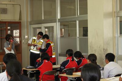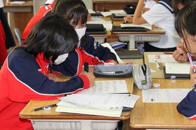 暑さ指数については、全校の保健体育委員が毎日WBGT値を測定し、コンテナ室前に掲示して周知を徹底しています。また、WBGT値が「厳重警戒」以上になった場合は、給食時間中の放送で全校生徒に対し、こまめな水分補給などの注意喚起を行っています。生徒一人ひとりが安全で安心して学校生活を送れるよう、心がけていきたいです。