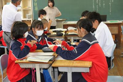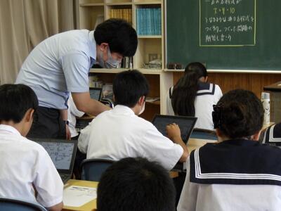 7月15日(火)4校時、2年2組において、新規採用の山元教諭による数学科の研究授業が行われました。単元名は連立方程式で、連立方程式の利用において、一方の与えられた状況からもう一方の式を見通しを立てて問題作成ができるようにする ことが、授業の目標でした。