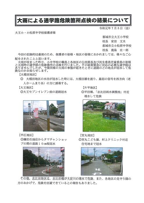 昨日、大雨の後、小・中学校職員と、公民館長・民生委員児童委員の皆様と通学路の安全点検を行いました。