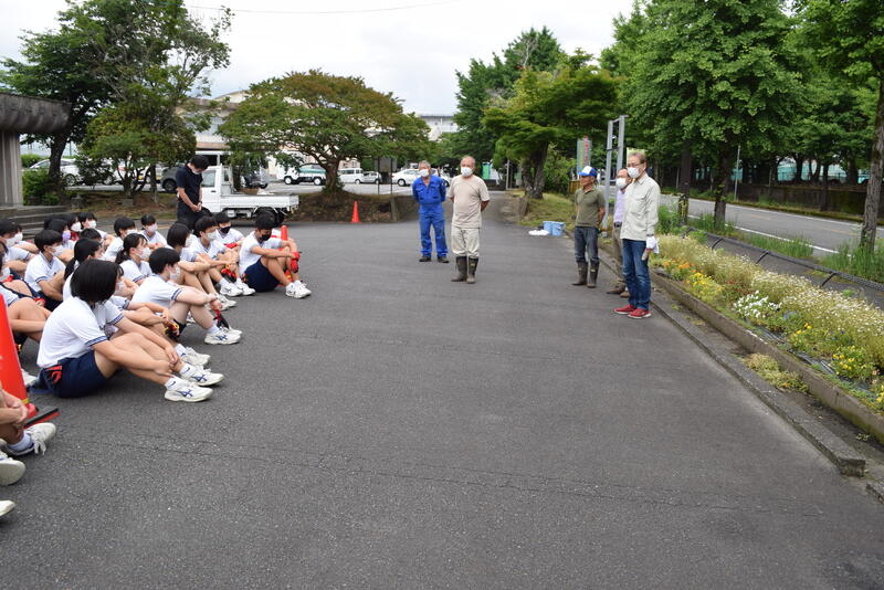 6月16日(木)に3年生が2回目の地域貢献活動として、地区体育館周辺の花壇に花の苗を植えました。前回、除草作業できれいになった花壇を地域の方々が肥料を混ぜて植える状態に作ってくださいました。