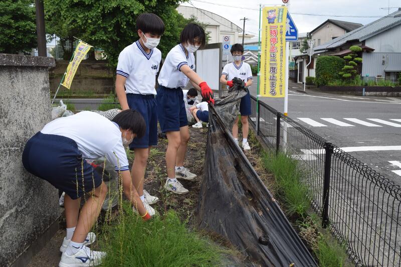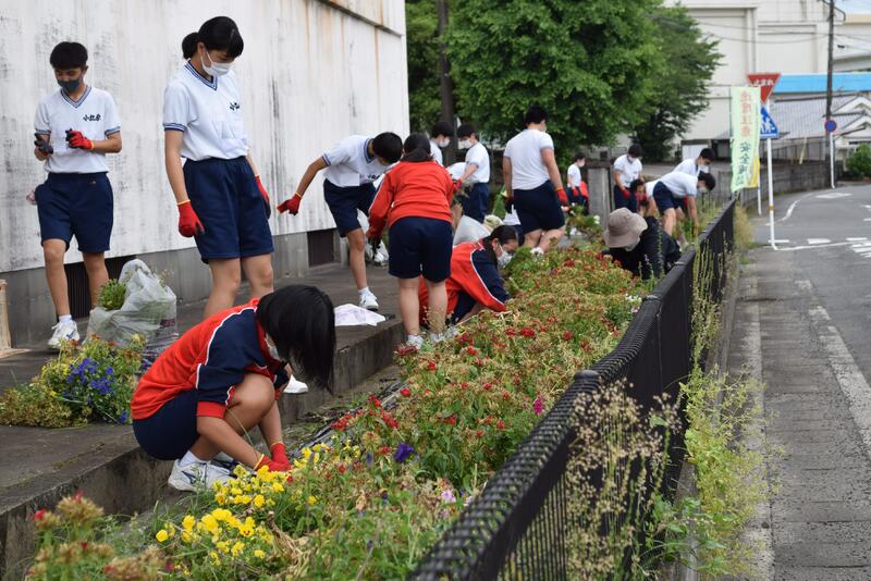 5月25日(水)に3年生が地域貢献活動として、地区体育館周辺の花壇整備をしました。