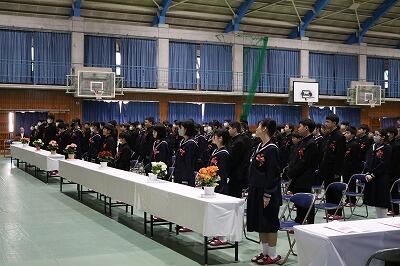 3月15日(金)の1校時目、体育館にて、本校同窓会会長、中原様にご臨席賜り、第76回卒業生の同窓会への入会式を行いました。