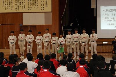 開式の前に表彰が行われ、部活動関係(ソフトテニス、卓球、吹奏楽)、プレゼンコンテスト、こども造形展、感想文、感想画、ボランティア、市精励賞、小さな親切運動、さらに全校学習委員会による計算・英単語コンクールなど多種にわたる表彰でした。