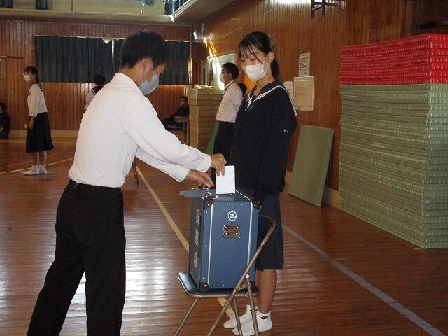 全員が演説を終えると、投票が行われました。管理委員が見守る中で静粛な雰囲気で大切な一票を投じました。