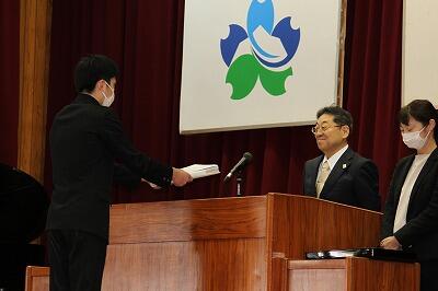 新任式では、新たに着任された、9名の先生方の紹介があり、生徒代表として生徒会長が歓迎の言葉を述べてくれました。