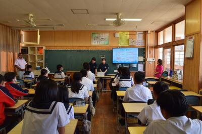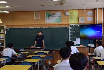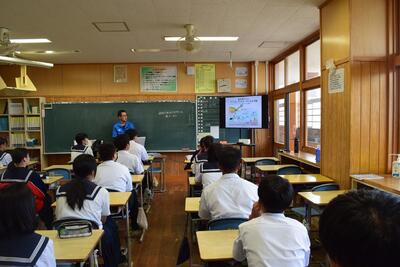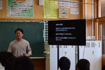 10月16日(木)の5・6校時、3年生を対象にキャリア教育講話を実施しました。(※当初は9月4日(木)に実施予定でしたが、天候不順のため延期となっていました。)