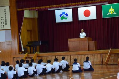これは、県大会へ出場する選手が、小松原中学校の代表としての誇りを持ち、大会で全力を尽くすことができるよう、全校生徒で活躍を祈念し、激励することを目的としています。