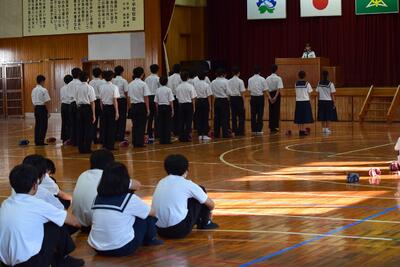 10月16日(木)のKTの時間に、宮崎県中学校秋季体育大会に出場する選手の激励式を行いました。
