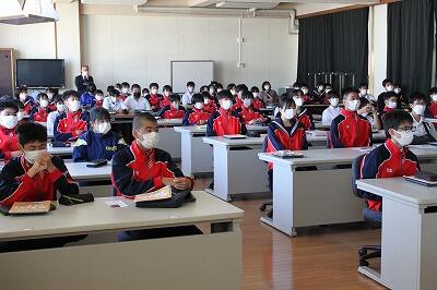 校長先生の話では、小松原地区の二十歳のつどいに来賓として参加した際に、本校の先輩である新成人の謝辞において、未熟であるにもかかわらず、苦難を乗り越え成長した今があるのは、両親や地域の方々のお陰であると、自分の言葉で素直に感謝の気持ちを伝えていたことに感銘を受けたという話をされました。さらにへび年にあやかり、蛇が脱皮して成長するように、生徒の皆さんが新たなことに積極的にチャレンジし、自分をさらに伸ばしていくことを期待したいというお話で締めくくられました。