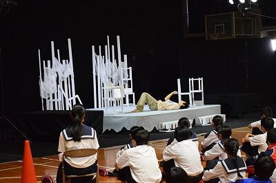 11月12日(火)の午後から本校体育館にて、鑑賞教室が行われました。今年は演劇鑑賞で、本物の舞台芸術を鑑賞することを通して、演劇の楽しさや素晴らしさを味わい、豊かな情操や感性を養うとともに、望ましい鑑賞の態度やマナーを身に付けることをねらいとしました。