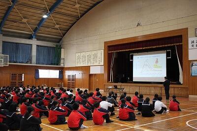 12月19日(木)の5校時に本校体育館にて、全校集会がありました。