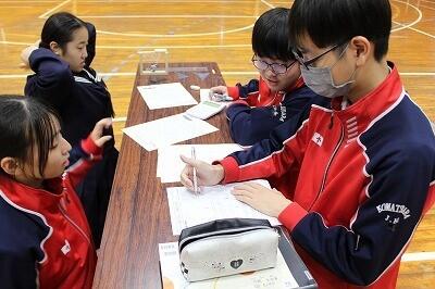 12日(木)5校時の2学年集会では、全国大会出場に向けての壮行会が行われました。学年代表が応援メッセージを送ったり、エールを全員で送ったりしました。そして3名それぞれが、決意表明をしてくれました。全国大会でも、いつものチームワークの良さが発揮できることを期待したいです。