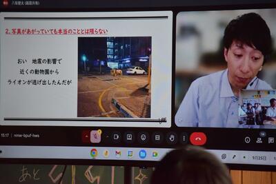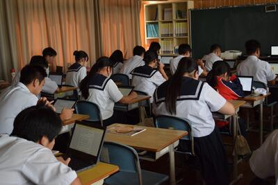 9月25日(木)の6校時、全校生徒を対象に「情報教育の日Ⅱ」の授業を実施しました。今回は、各教室と職員室をGoogle Meetで繋ぎ、全校一斉で取り組みました。