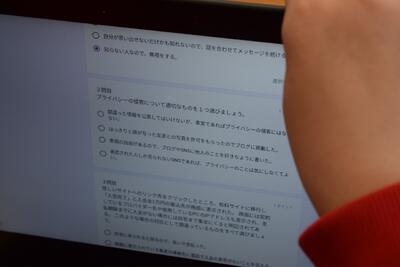 まず、ICT担当教員からモラルとマナーについて説明があり、その後、モラル・マナークイズを通じて、望ましい利用法や注意すべき点について楽しく学びました。
