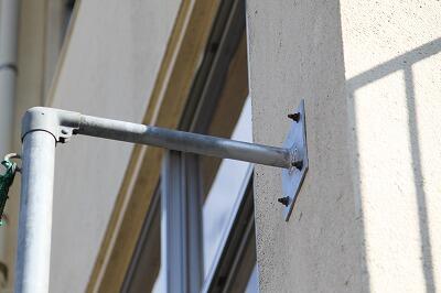 また、北校舎のグランド側に設置してある、防球ネットの支柱の取り付け金具の溶接が外れ、傾いていました。教育委員会の教育総務課に修理をお願いしていたところ、専門業者の方が来校され修理をしてくだいました。ネットの張りが元のように戻り、これで野球部も思い切りバッティング練習ができるようになりました。