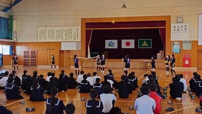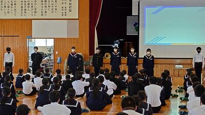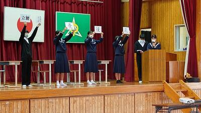 学校生活で必要な事柄を全校生徒で確認していく活動を行いました。特に「立腰」や「語先後礼」など生徒会役員が中心となり、寸劇を交えながらわかりやすく丁寧に行ってくれました。
