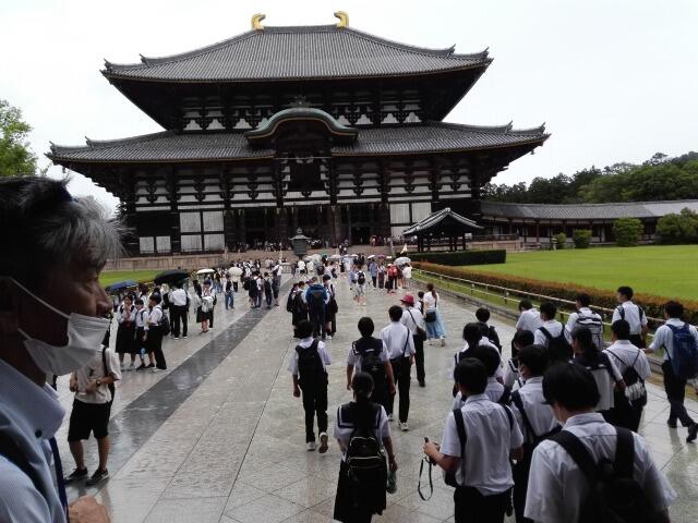 昼食後、東大寺jに行きました。二月堂近くをイドさんに案内してもらながら見学をしました。その後大仏殿、南大門を見学しました。たくさんの鹿が出迎えてくれました。