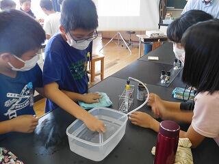 オールイングリッシュで、何のキャラクターかを当てるクイズ形式の英語の授業と、実際に班別に実験道具を使用して、気体を発生させる理科の授業を受けてもらいました。両方の授業とも大変積極的に発言したり、指示の際はけじめをつけてしっかり話を聞いたりと、大変素晴らしい授業態度でした。来年度が楽しみです。