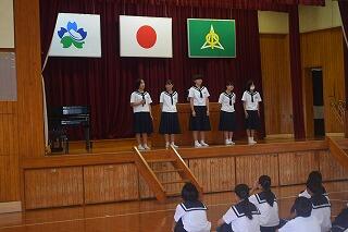 21日(木)のKTの時間を使って、22日(金)実施の県中学校秋季体育大会水泳競技と24日(日)から実施の都城地区中学校秋季体育大会の激励式を体育館で行いました。