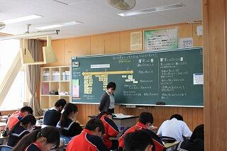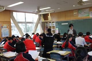 17日(金)に、都城市三股町合同教育研中学道徳部会の授業研究会が本校で開催されました。2年2組において、学級担任の立元教諭の指導のもと、教科書の「嫌われるのを恐れる気持ち」を教材に自己の向上について考えました。