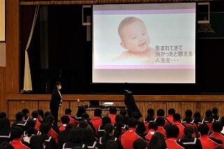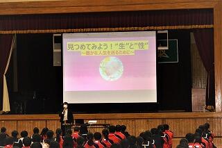 「見つめてみよう!性と生 ~豊かな人生を送るために~」という演題で思春期の性、男女の性の違いや法律との関連、命の大切さなど、今のこの時期に真剣に学んでほしい内容がたくさん盛り込まれたお話でした。