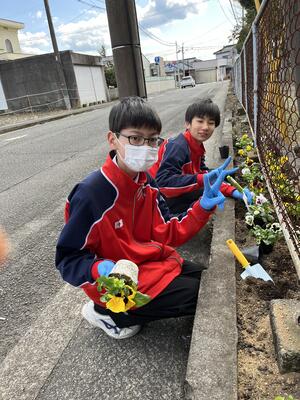 人権の花で、パンジーの苗300本をいただきました。さっそく昼休みにボランティアを募り、体育館東側の花壇に植えました。こまボラ隊をはじめボランティアの皆さんは、手慣れた手つきであっという間に植えてくれました。
