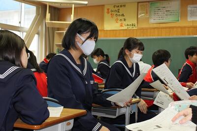 2月22日(木)の6校時、1年1組の総合的な学習の時間に、学級担任の川越教諭による研究授業が行われました。