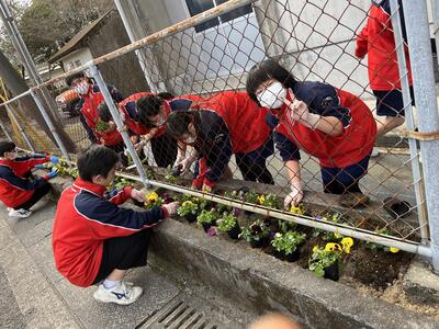 人権の花で、パンジーの苗300本をいただきました。さっそく昼休みにボランティアを募り、体育館東側の花壇に植えました。こまボラ隊をはじめボランティアの皆さんは、手慣れた手つきであっという間に植えてくれました。