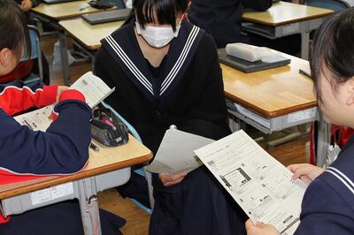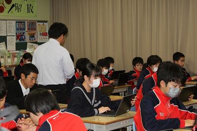 2月22日(木)の6校時、1年1組の総合的な学習の時間に、学級担任の川越教諭による研究授業が行われました。