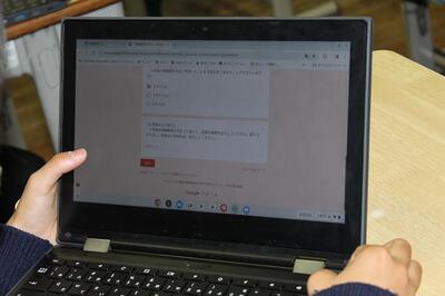 授業の最後には、1年間の振り返りをGoogleフォームに入力していました。3年生にとっては最後の情報教育の日となりました。