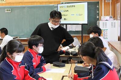 3月14日(木)の5校時に、2年1組にて、学級担任朝倉教諭による特別活動の研究授業が行われました。