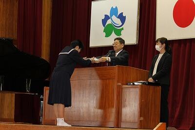 式では各学年の代表が年間反省を発表し、その後学校長が代表に修了証書を授与、そして今年度の成果やまとめの話をして終了しました。