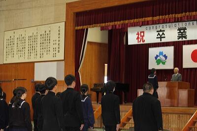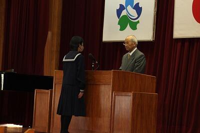 3月15日(金)の1校時目、体育館にて、本校同窓会会長、中原様にご臨席賜り、第76回卒業生の同窓会への入会式を行いました。