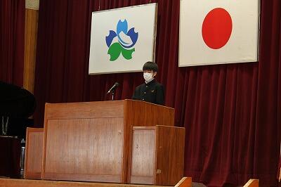 同窓会会長からのご挨拶の後、入会の許可をいただきました。そして生徒代表が誓いの言葉を述べました。
