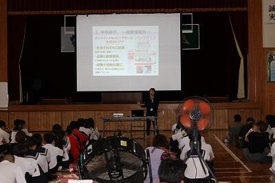 今回は宮崎学園、宮崎日本大学、日章学園、鵬翔、都城聖ドミニコ学園、都城の6校の私立高等学校と国立都城工業高等専門学校の合わせて7つの上級学校の先生方がご来校され、各学校の特徴を説明してくださいました。