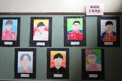 美術科の生徒作品について、2年生の自画像が管理棟1階から2階への階段の壁や、北校舎2階の渡り廊下前のフロアーに掲示してあります。また3年生の篆刻の作品が北校舎3階の渡り廊下前のフロアーに展示してあります。1学期の美術科での生徒の頑張りをご覧ください。