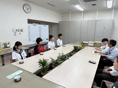 6月19日(水)に小松原地区まちづくり協議会から、会長はじめ3名の代表が来校され、本校のこまボラ代表生徒3名と担当教諭を交えた懇談会が開催されました。
