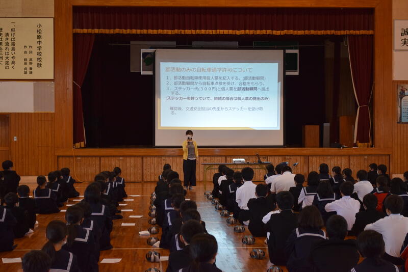 4月12日(火)の午前中に自転車の乗り方と安全に関する説明会を行いました。毎日の登下校だけでなく便利な自転車ですが、自分の命を守り、他の人も命を守るためにも十分気をつけながら乗りたいものです。
