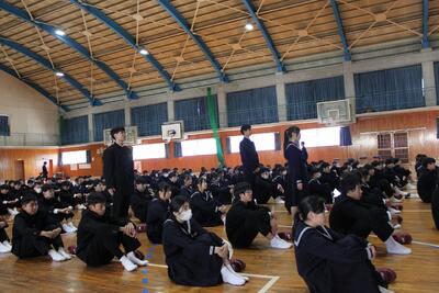 競技種目は「ドッジボール」。男女別にそれぞれ2リーグに分かれ、白熱した予選と順位決定戦が行われました。 体育大会以来、久しぶりに全校生徒で体を動かす機会となりましたが、運動場は終始大きな歓声と笑顔に包まれました。卒業式を目前に控え、全校生徒の絆がより一層強まった一日となりました。