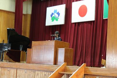 〇1年生代表: 「元気な挨拶や提出物の徹底ができるようになった」という自信とともに、「時と場に応じた落ち着いた行動」という新たな課題も見つけ、成長を誓いました。