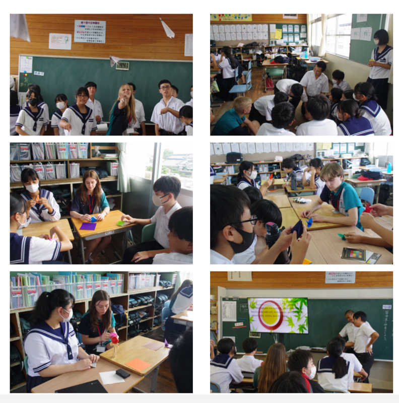 9/25(水)5校時は日本文化体験1を行いました。折り紙や紙飛行機飛ばし、けん玉やカルタ取りなど昔からの日本の遊びや、都城市や宮崎県について紹介するプレゼンを英語で作成したものの発表会などを行いました。