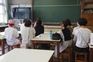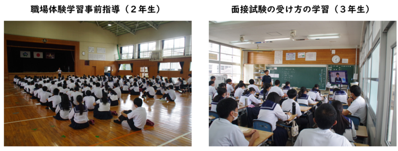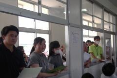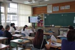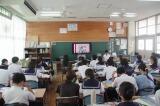 また、当日朝の判断になりましたが、熱中症対策として体育館での実施を取り止め、3年生は各教室で、保護者の皆さんは被服室と調理室にてオンラインによる説明をご視聴いただきました。